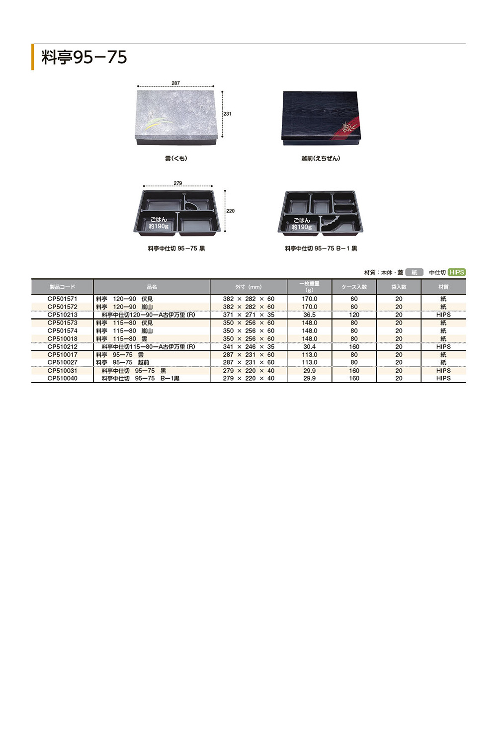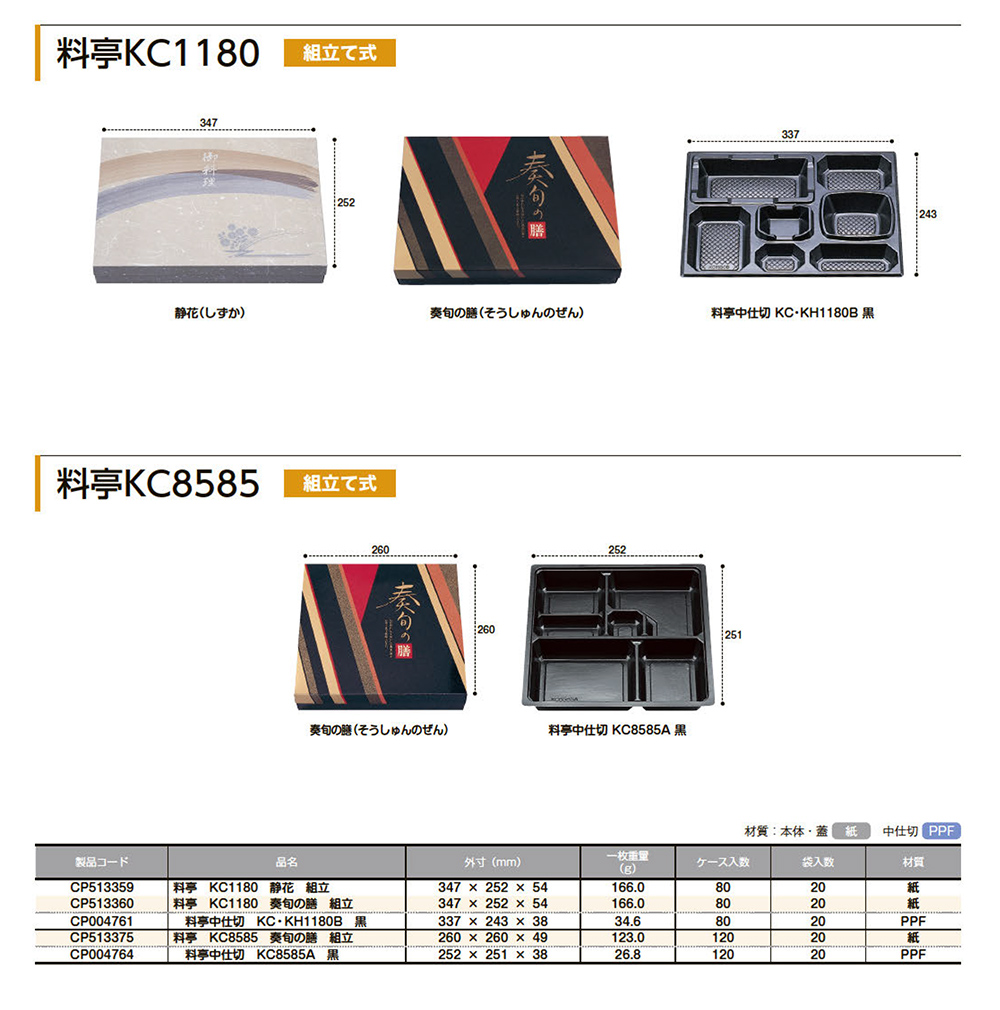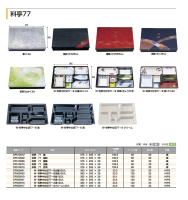 高級会席にふさわしい、上品で優雅な趣を醸しだす紙ボックス。 さらに美しい定位置柄を施した中仕切が、お料理をいっそう美味しくまとめあげます。