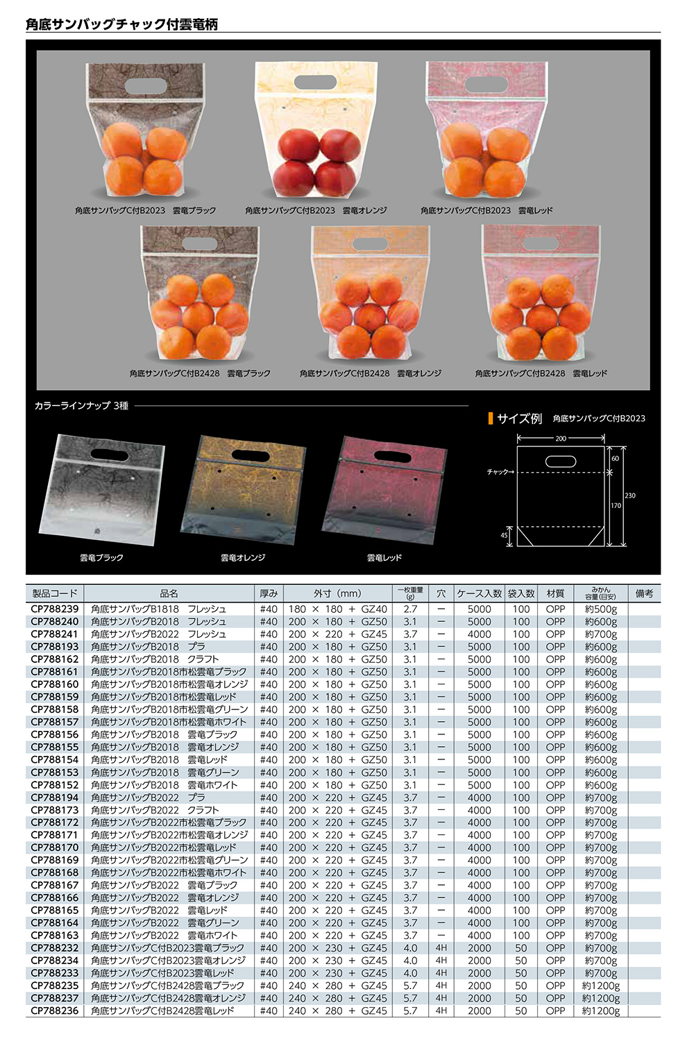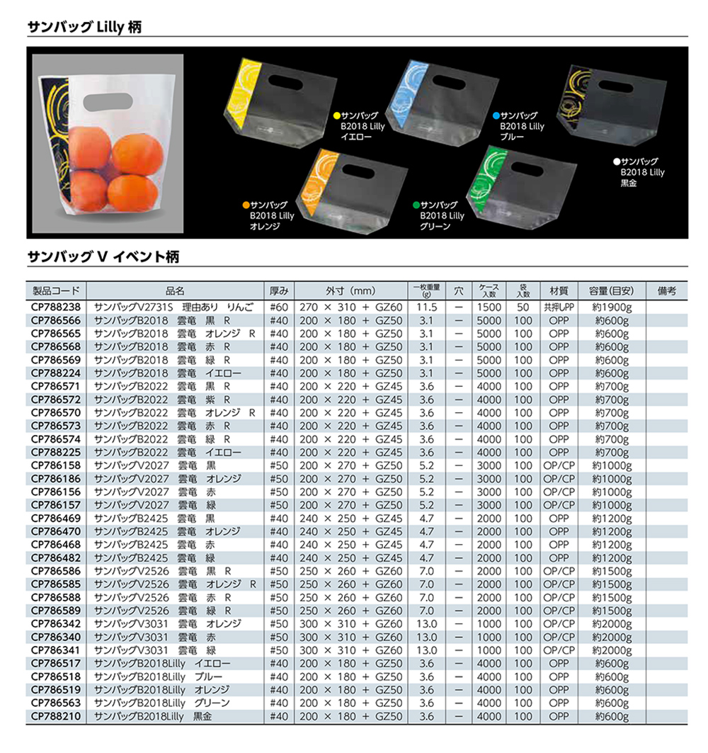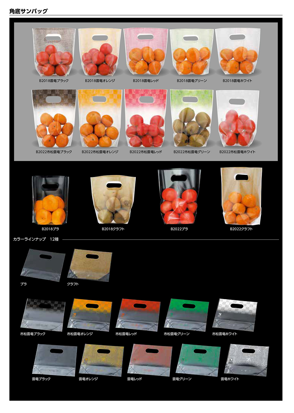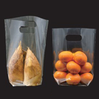 青果物の立体陳列などに最適な透明手提げ袋です。