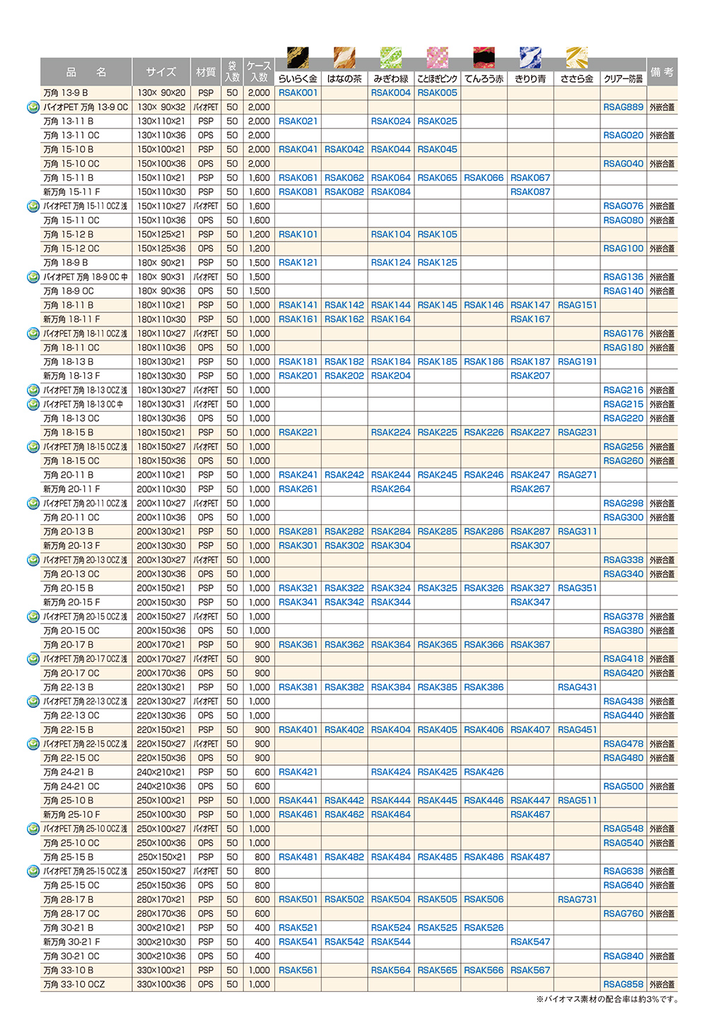 定評のある寿司容器「万角・新万角」の豊富な柄もそのままに、お刺身サイズとしてもご用意しました。