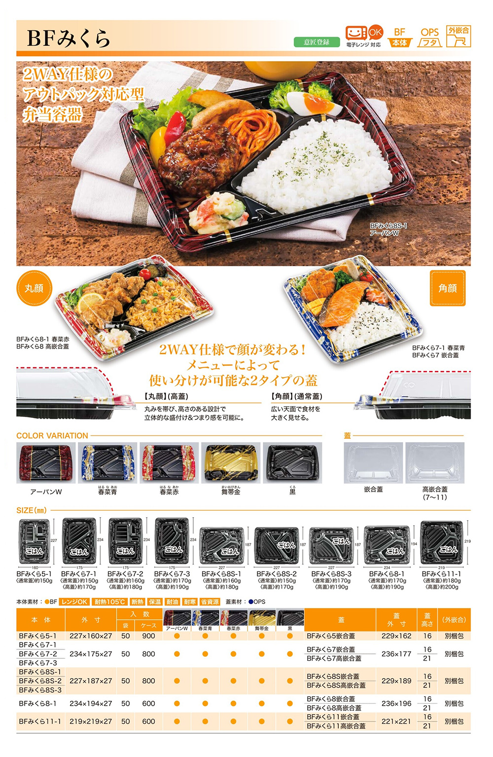 商品リスト ▼2WAY仕様のアウトパック対応型弁当容器です。