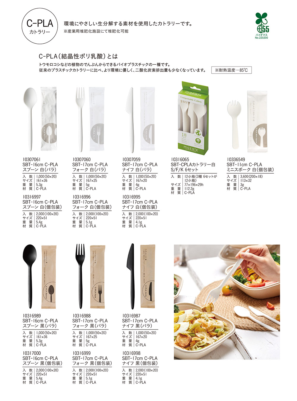 商品リスト ▼環境に優しい生分解する素材を使用したカトラリーです。