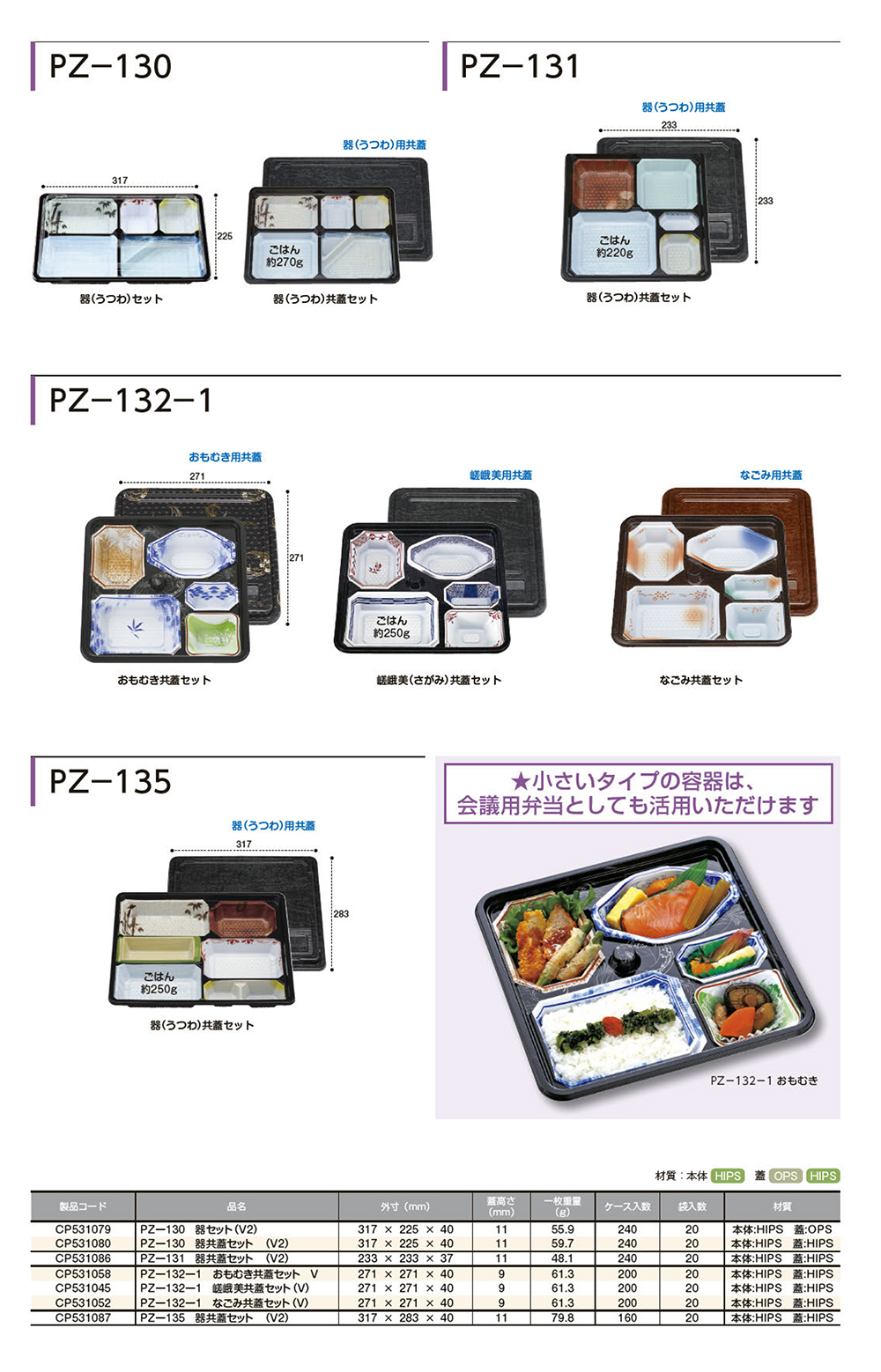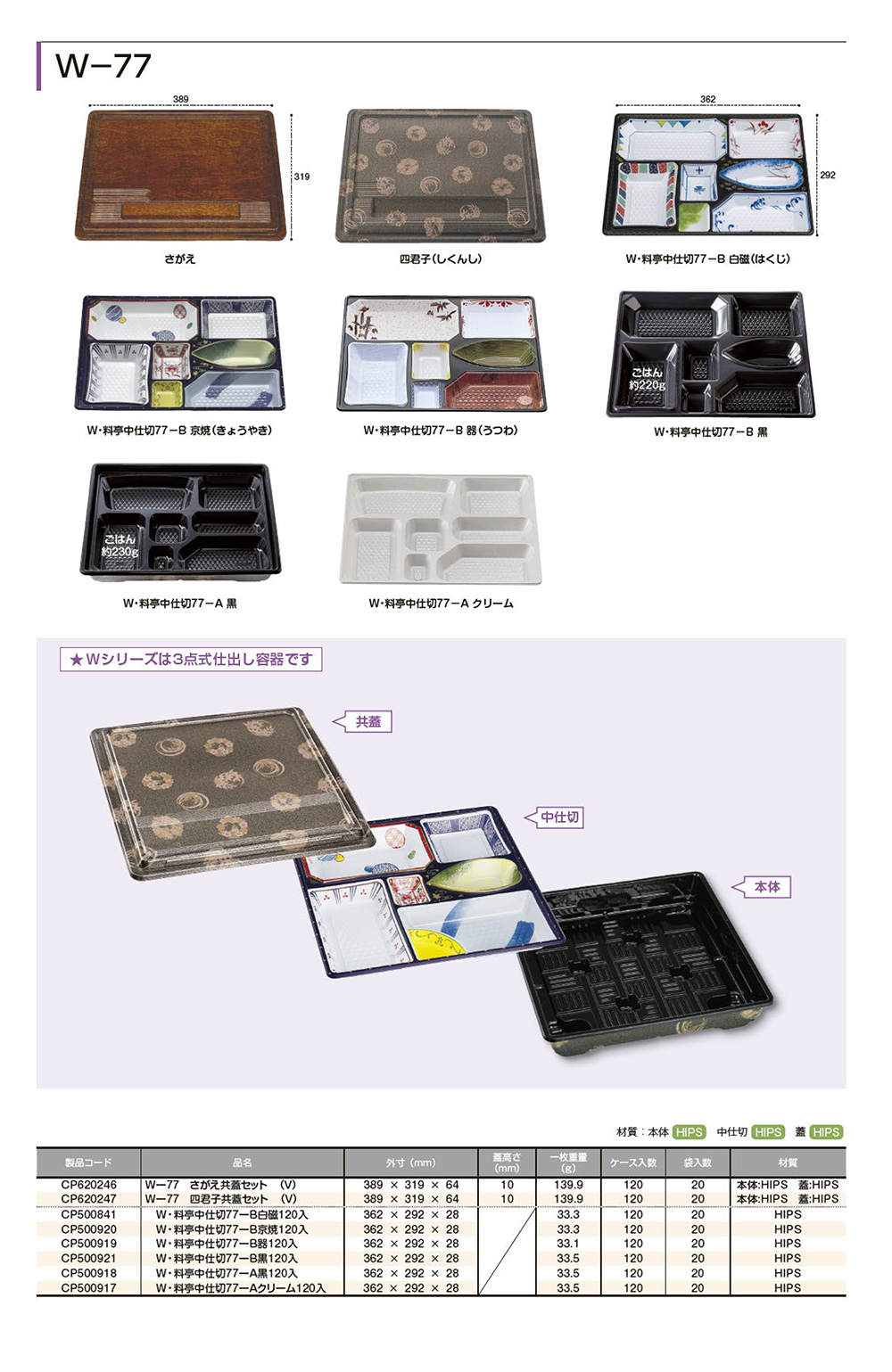 仕切が選べる3点式の仕出し容器です。 (本体・中仕切・共蓋)