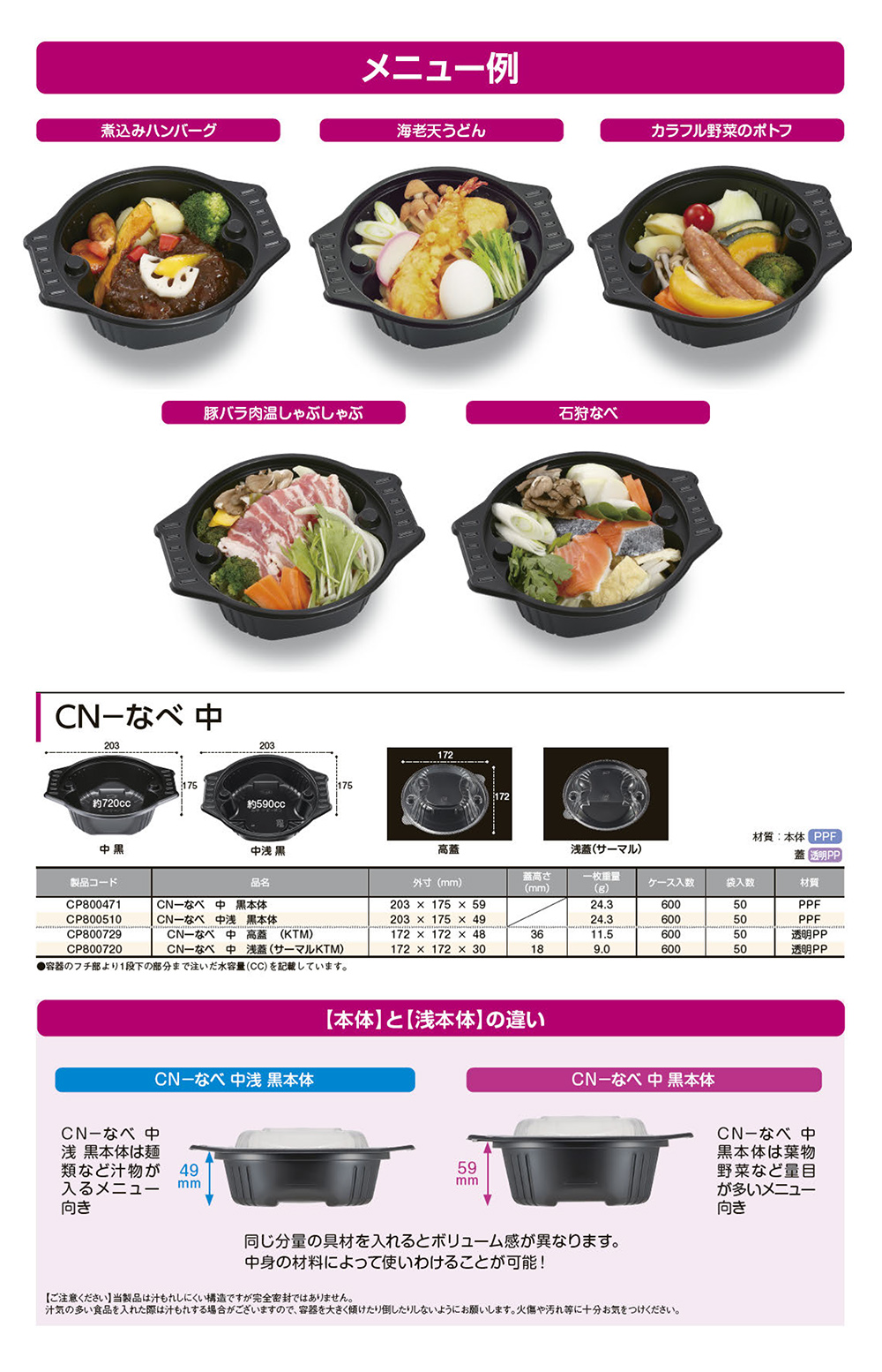 蒸らしができる容器、スチームコンベクション対応容器、発熱剤で加熱料理ができる容器など、機能性に特化した容器の他、サンドイッチ容器をピックアップしました。