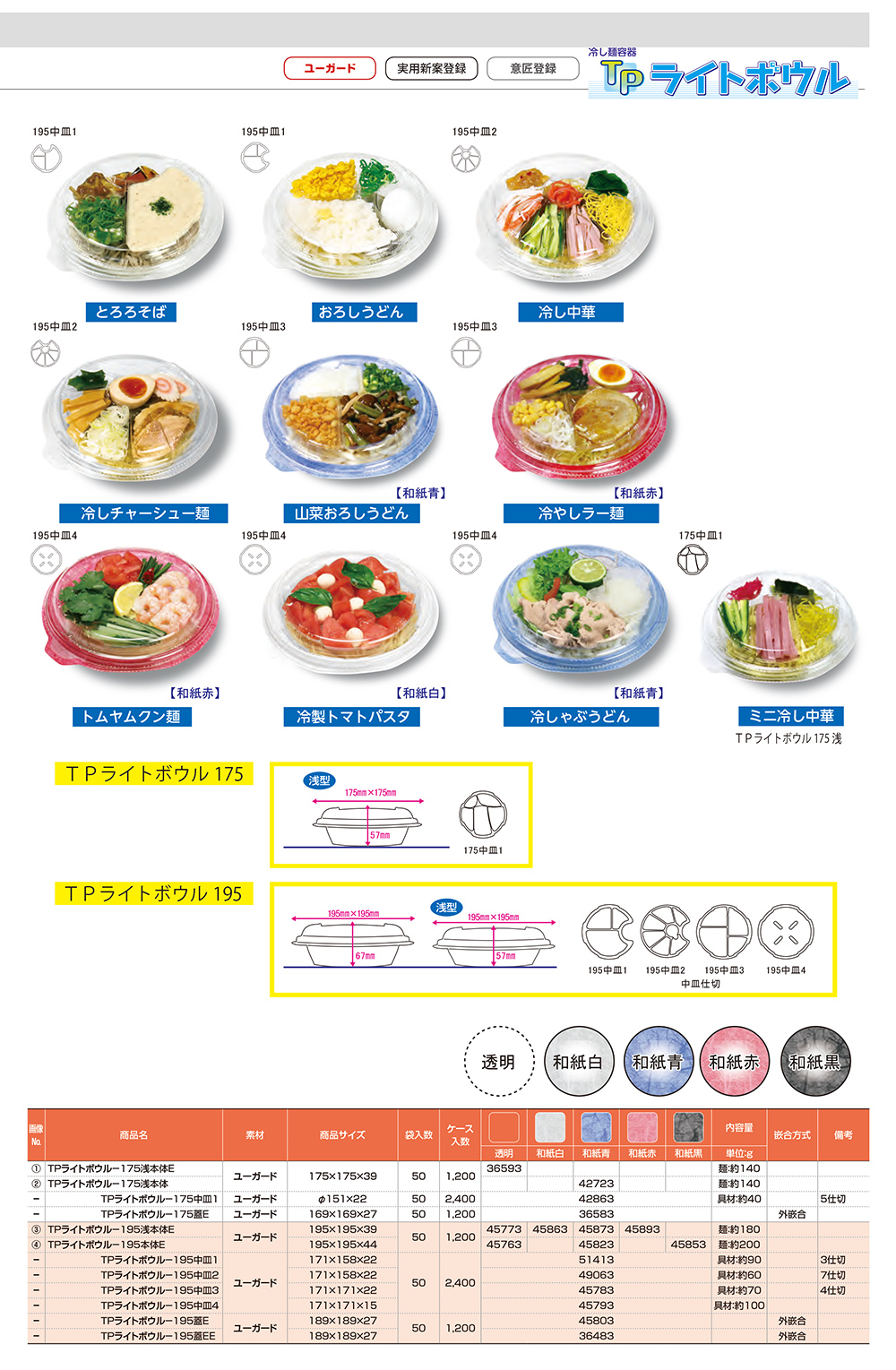 麺容器のオールラウンダー! 用途に合わせ素材や形状が選べます。