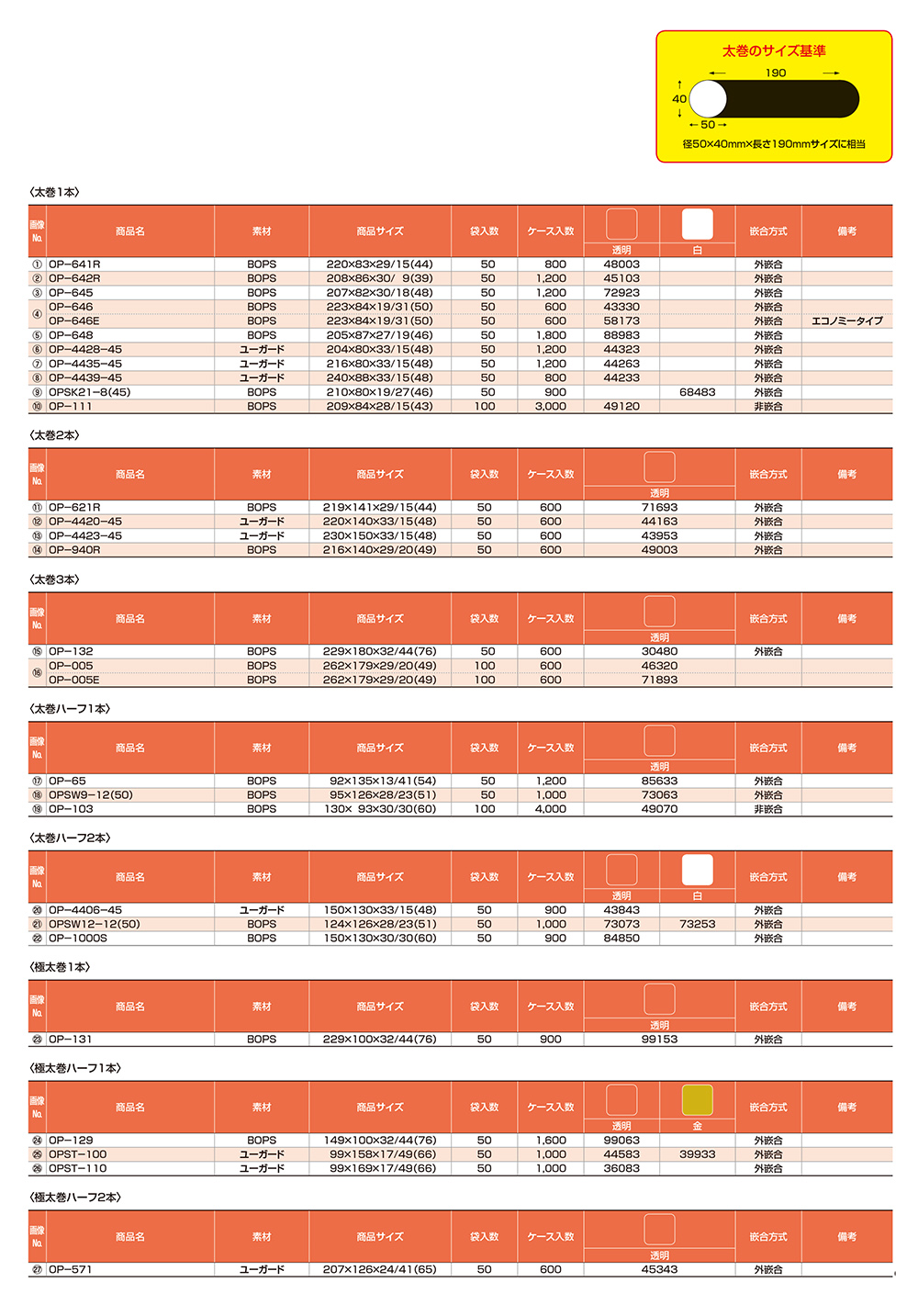 ・中巻1本・中巻2本・中巻3本 ・中巻ハーフ2本・中巻ハーフ3本・中巻ハーフ4本 ・細巻1本・細巻2本