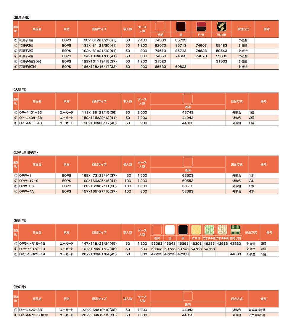 生菓子、大福、団子、串団子、柏餅などに最適なフードパックです。