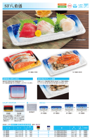 視認性抜群の本体・蓋形状。 幅広い用途で使用できるフラットな刺身容器です。