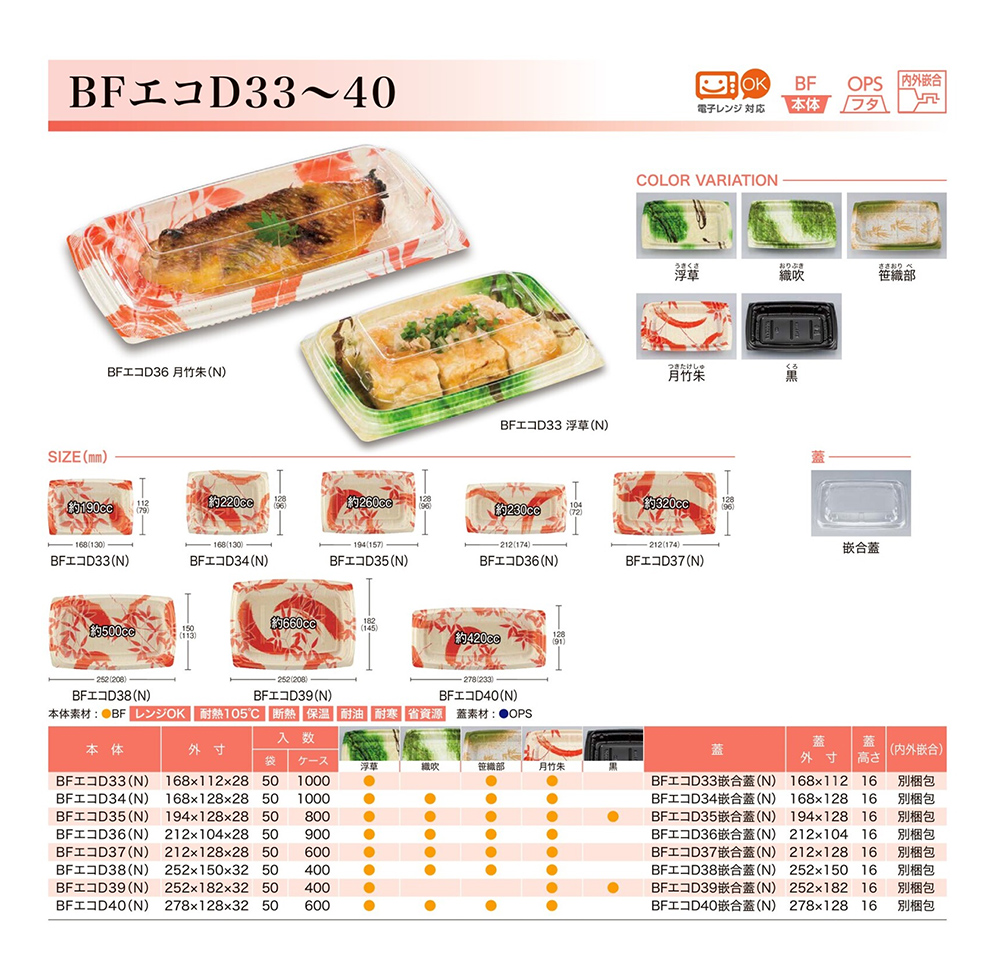 ●本体:BF/レンジOK・耐熱105℃・断熱・保温・耐油・耐寒・省資源