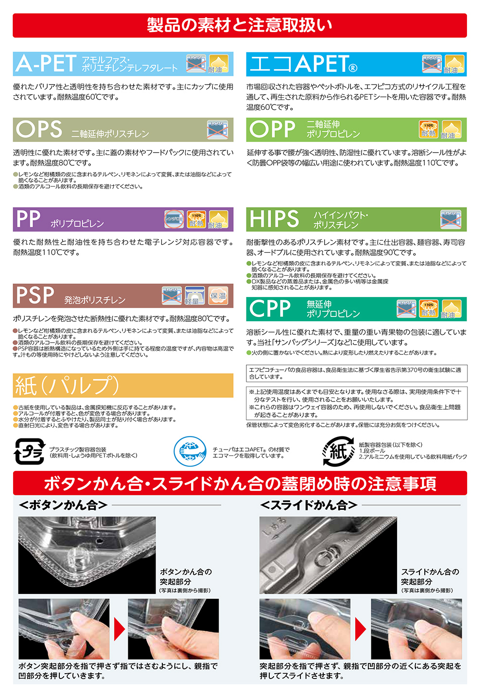 ●製品情報の見方 ●製品の素材と注意取扱い ●製品の共通取扱い注意事項