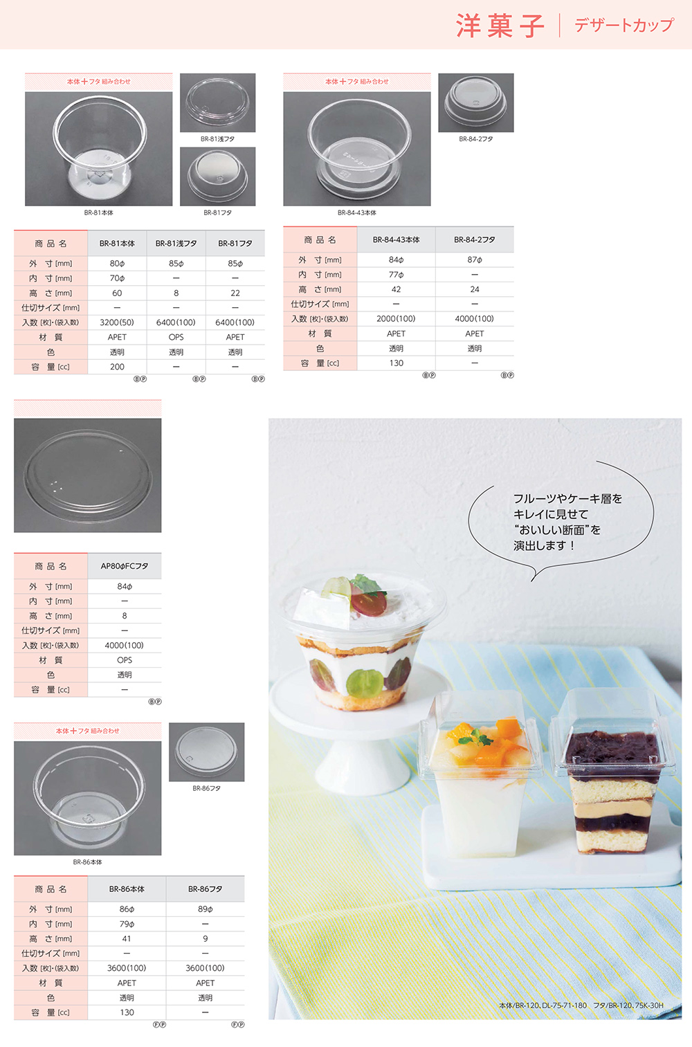 フルーツやケーキ層をキレイに見せて「おいしい断面」を演出します。 |